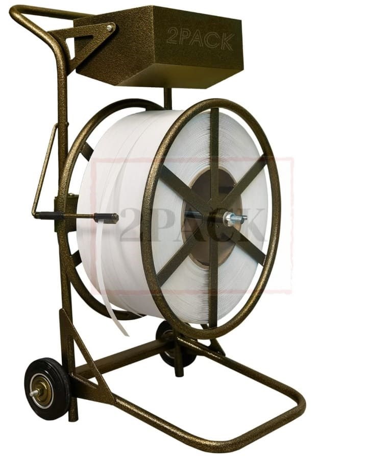 Средний вес ролика стреппинг ленты 10-12кг. Вместе с лентой нужно переносить инструмент и крепежный материал (скрепы, скобы). Это не удобно и тяжело если упаковку нужно выполнять в различных частях склада, территории или иного помещения.