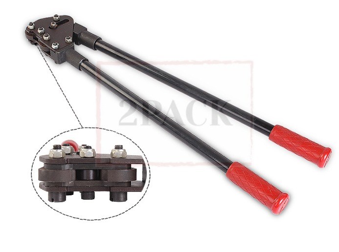 SKS-32/25/19 надежный и удобный инструмент с длинными обрезиненными ручками, позволяющими без особых усилий обжимать металлическую скобу для скрепления стальной ленты.