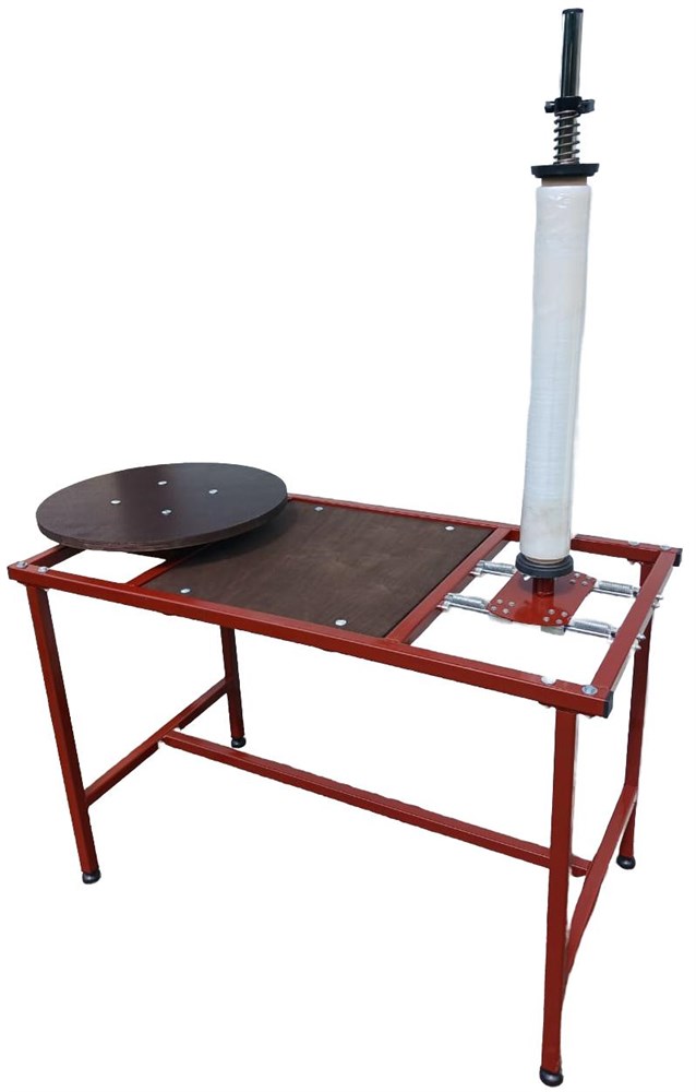 Упаковщик в стрейч пленку с вращающимся упаковочным столом, хорошо подходит для быстрой упаковки товаров различной формы и габаритов.